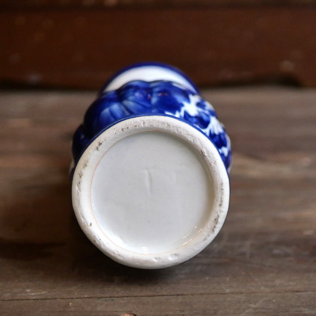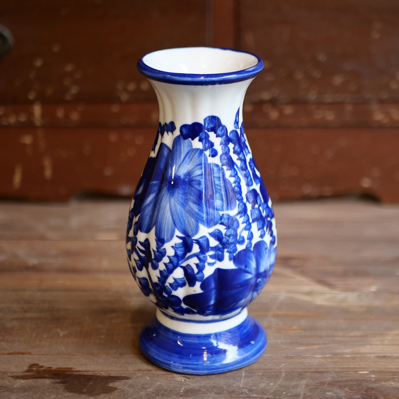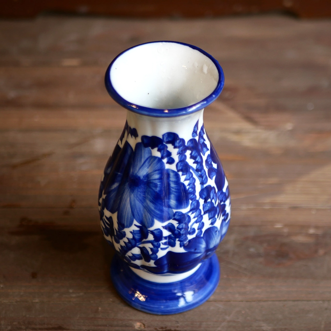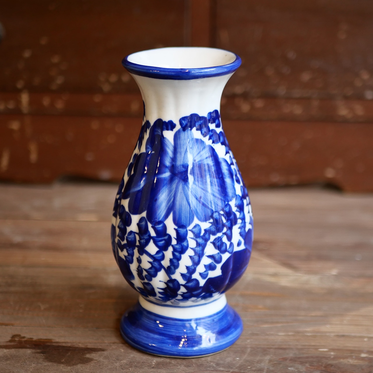 白い釉薬にコバルトブルーでペイントされた、美しい花瓶です。